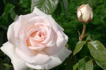 Rosier à grandes fleurs d'un blanc pur parfumées. Végétation vigoureuse, avec un feuillage vert foncé, brillant. Excellente résistance aux maladies. Ht : 0,80m.