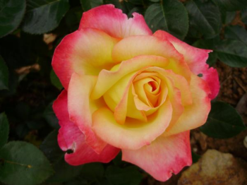 Couleurs: Rosier buisson remontant rouge et jaune parfumée. feuillage luisant. Ht: 0.70 m
